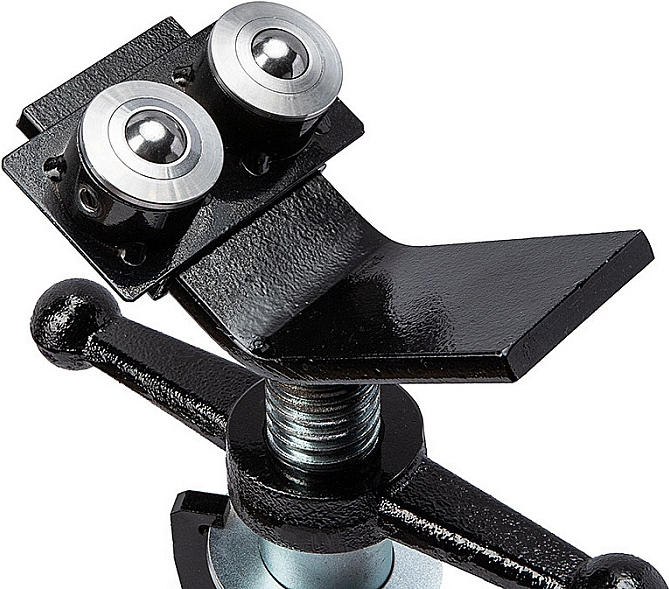 Двойная роликовая насадка для трубных опор Remmers 18 мм (Реммерс 18 мм) на скользящей площадке устанавливается с 2-х сторон V-образной опоры трубных стоек и фиксируются барашковым винтом. Направляющий ролик используется для снижения момента трения с возможностью приложения минимальных усилий при перемещении по опоре или вращении труб. Для подстройки под диаметр трубы площадка с роликами имеет возможность перемещения и фиксации в необходимом положении. Как правило, трубная опора используется совместно с резьбонарезными станками, желобонакатчиками, электрическими труборезами и т.д.