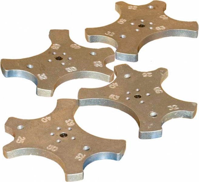 - Диаметр зажимаемой трубы определяется положением 4-х зажимов, каждый из которых поворачивается вокруг оси и фиксируется в одном из 7-ти положений