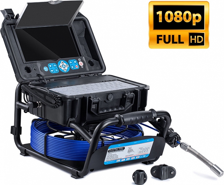 Проталкиваемая система видеодиагностики канализационных труб Rotorica 3499F-20 (Роторика 3499Ф-20) с камерой CMOS, Ø 23 × 51 мм, широким углом обзора 130° и разрешением формата Full HD 1080P AHD (1920 × 1080), записью видео и аудио, встроенным счетчиком расстояния и катушкой с кабелем Ø 5,2 мм × 20 м предназначена для осмотра внутренних трубопроводов, канализации и сливов, а также для инспекции каналов, дымоходов, воздуховодов в производствах и домах.